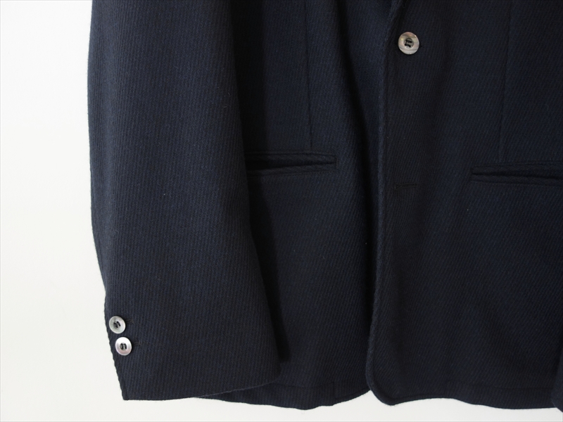 この服の表地に用いられてるのは、強縮加工を施した甘織りのウールサキソニー。