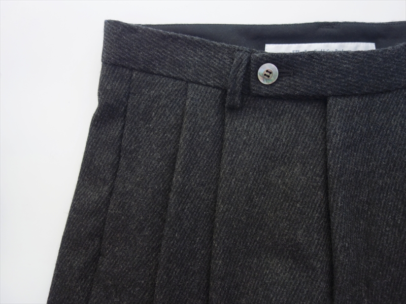 先行して入荷し、ご好評いただいているNo.23-58-F-TP(通称フィラパン)と同じく、尾州産のウールリネンの綾織生地を採用。