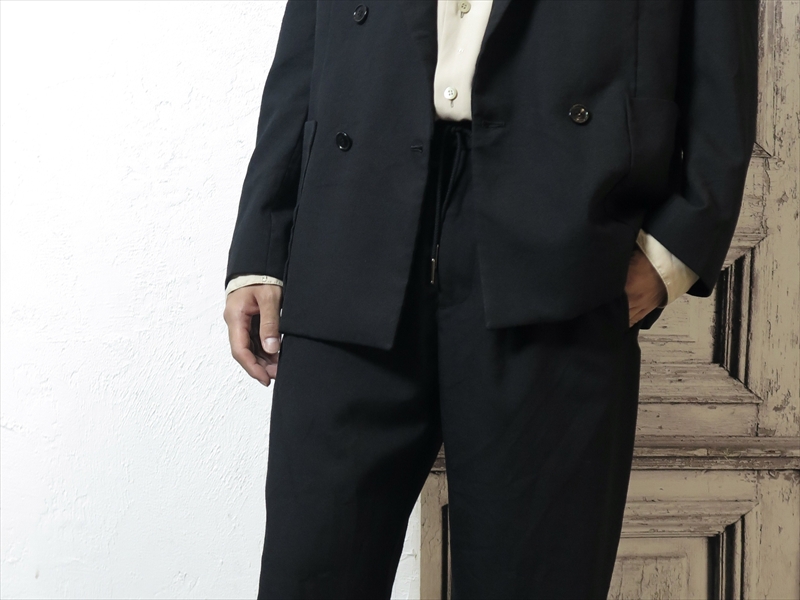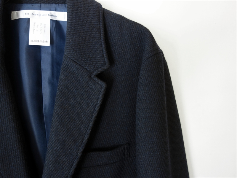 ジャケット、パンツともに、クリーンでありながら綺麗になりすぎず、そして威圧感を与えない、実にEEL Productsらしいバランス感覚で、晩秋~冬のさまざまな装いの一員として大いに活躍してくれるはずですよ。