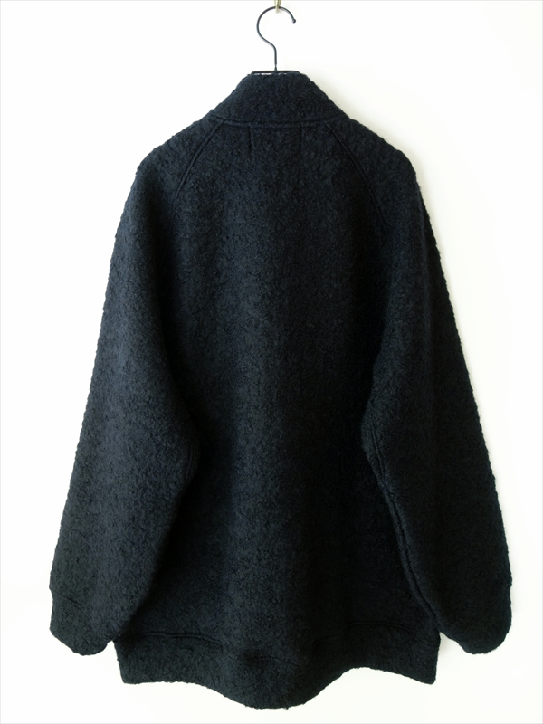 ウールナイロンのループ糸を使用して編み立てた肉厚なジャージー素材は、体温で温められた空気をたっぷりと含み、冷たい外気から身を守ってくれます。