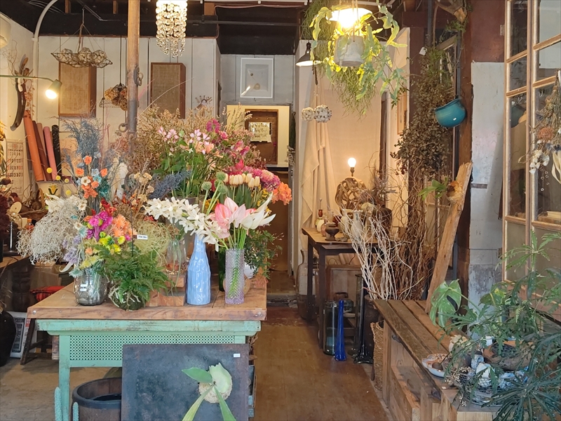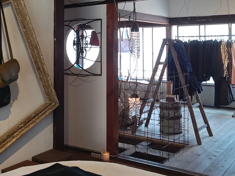 今回の会場は建物の2階に位置し、フラワーショップMaree Chanterさんと、古着とオーナー自身の手による服を提案するatelier FAMさんの間を抜けた先にある階段を登った場所ですので
