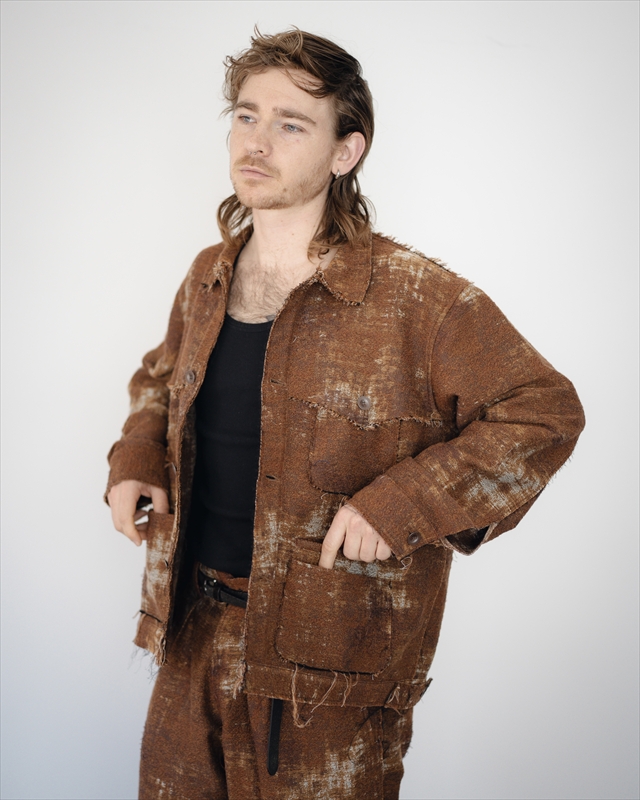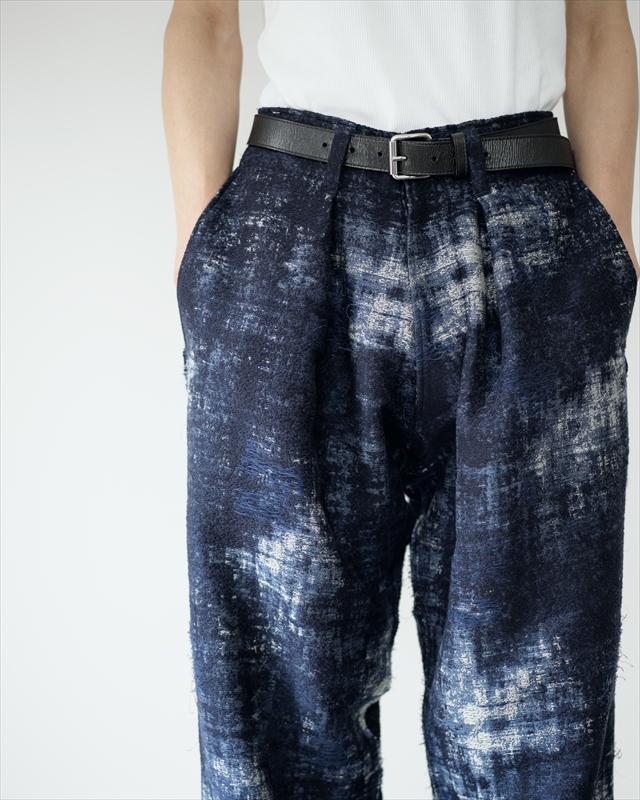 襤褸、錆、苔と、時間の経過を感じさせるモティーフを、コットンのコンパクトヤーンと細いウールの糸と掛け合わせたジャカードで表現しました。