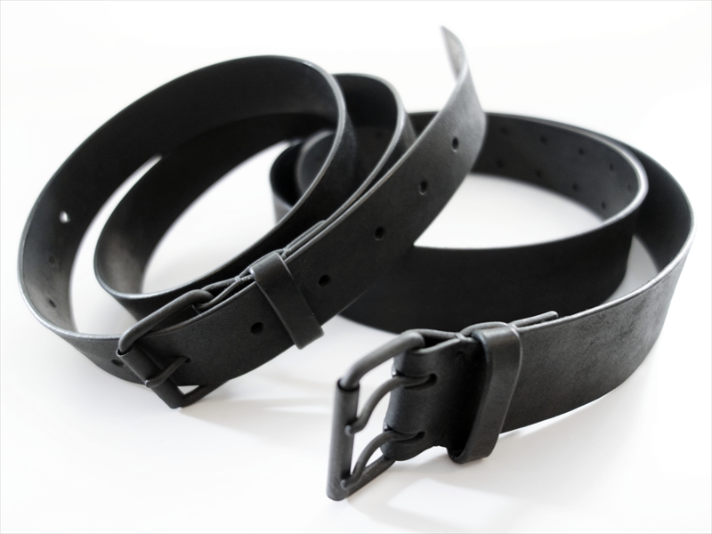 ベルト自体の構造は共通し、しっかりとしたイタリア製のカーフレザーを薄めに漉き、まさに帯のように仕上げた一枚革のベルトです。