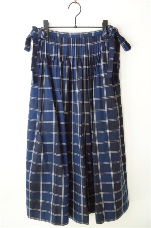 チェック柄のコットンリネンの生地で仕立てられたプリーツスカートです。